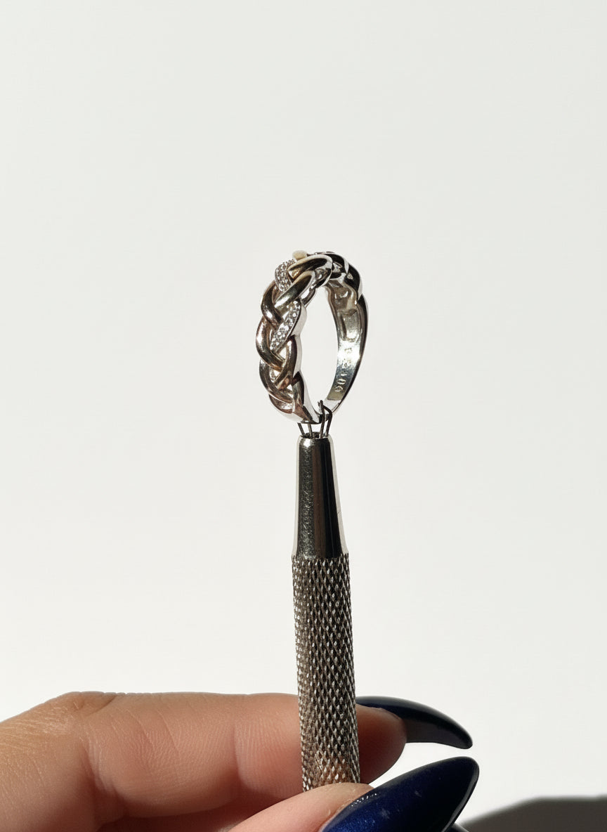 - 1mm diamonds set in white 10k gold